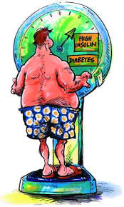 A legtöbb kövérnél, a sok cukrot és zsíros ételt fogyasztóknál a vér inzulin szintje a kellőnél magasabb, ezért többnyire éhesek. Ha jóhiszeműen koplalnak, vagy ha túl szigorú fogyókúrára szánják el magukat, akár a hypoglikémiához hasonló rosszullétek is jelentkezhetnek. Ezt a rosszullétet legjobban a finomított cukor enyhíti, legalábbis átmenetileg. Sajnos erre sokan ösztönösen rájönnek, ezért éhségüket gyakran édességgel próbálják csillapítani. Természetesen, így vérük inzulinszintje automatikusan tovább emelkedik. A fokozódó inzulinszint fokozza az éhséget, a fokozódó éhség evést és inzulinszint-növekedést jelent ("róka fogta csuka, csuka fogta róka"). Közben a mérleg többet és többet mutat, a sejt ajtóin levő zárak (receptorok) száma pedig egyre csökken, és egyre inkább károsodnak. Kulcs ugyan van bőségesen, de zár nélkül az ajtó mégsem nyitható. Egyszer aztán a hasnyálmirigy is belefárad, képtelen fokozni az inzulintermelést: "beadja a kulcsot"... És íme itt áll gyarló emberünk, immár a cukorbetegség boszorkánykörébe gabalyodva. Ha eddig "csak kövér" volt, a cukorbetegség "csak" célbavette. Ha viszont továbbra is az marad, vagy Uram boccsá', súlyában továbbra is gyarapodna, gyakran csak idő kérdése, hogy mikor válik cukorbeteggé. Kilábalni az átkos boszorkánykörből többnyire csak úgy tud, ha éhségén néhány napig képes lesz uralkodni, és nem tűri, hogy éhsége, az édesség és a zsíros falatok utáni vágyakozása uralja őt. Ez viszont nem gyerekjáték: "...ordas fenevadak marcangolják a gyomromat, éhségtől kopog a szemem". Vigasztalásul: a fogyókúra első napjai nehezek, aztán fokozatosan egyre könnyebbé és eredményesebbé válnak. Ha emberünk lemond a zsírról és a magas cukortartalmú édességekről és helyette a zöldséget, a főzeléket, a salátákat, a gyümölcsöket választja, akkor kínzó éhségérzete szinte napok alatt elcsitul: a sejt kinyitásához szükséges zárak száma máris növekedni kezd. Az inzulinszint sajnos még továbbra is magas marad, de ha sikerül a testsúly fokozatos csökkenését elérni, lassan beáll a normális szintre.